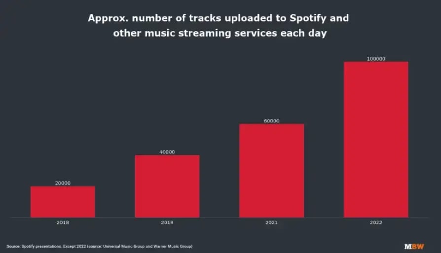 100k music tracks are uploaded every day on streaming services (+70% in 18 months!)